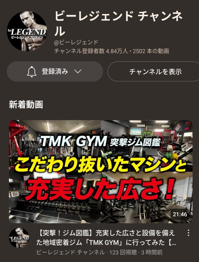 この度、ビーレジェンドプロテイン様公式YouTube「ビーレジェンドチャンネル」にてTMK GYMを紹介していただきました🎉