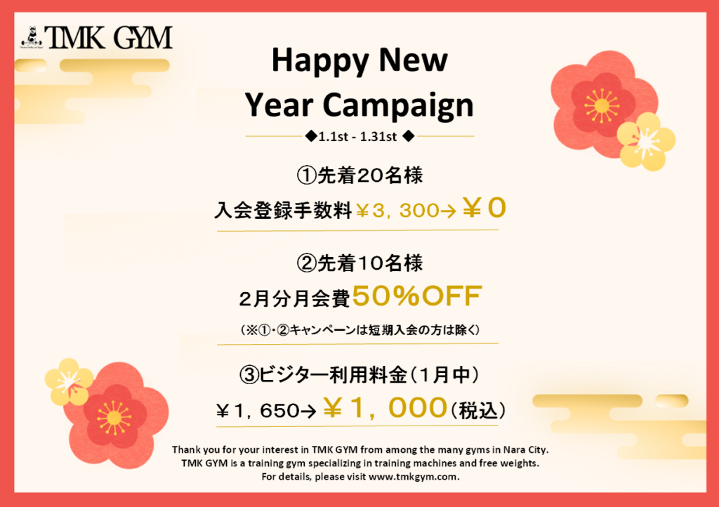 奈良市でジムをお探しの方必見!TMK GYM「1月限定・新春入会キャンペーン」
