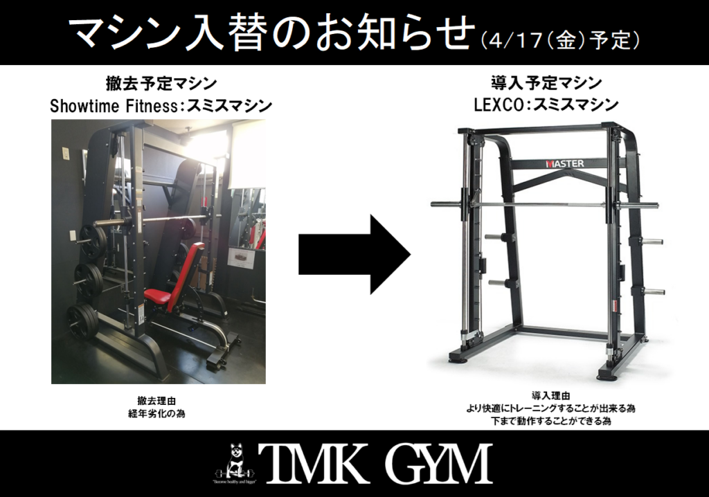 奈良のTMK GYMのトレーニングマシン入替え情報です💪